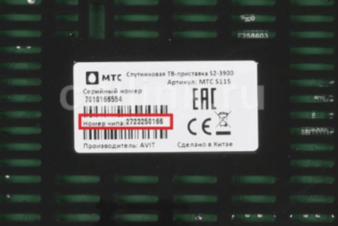 Чип ID находится на обратной стороне ТВ приставки и подписан "номер чипа"
