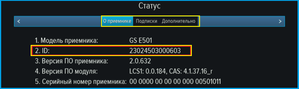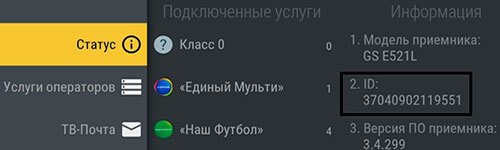 «№ ID», «Status» или кнопку «Триколор ТВ»